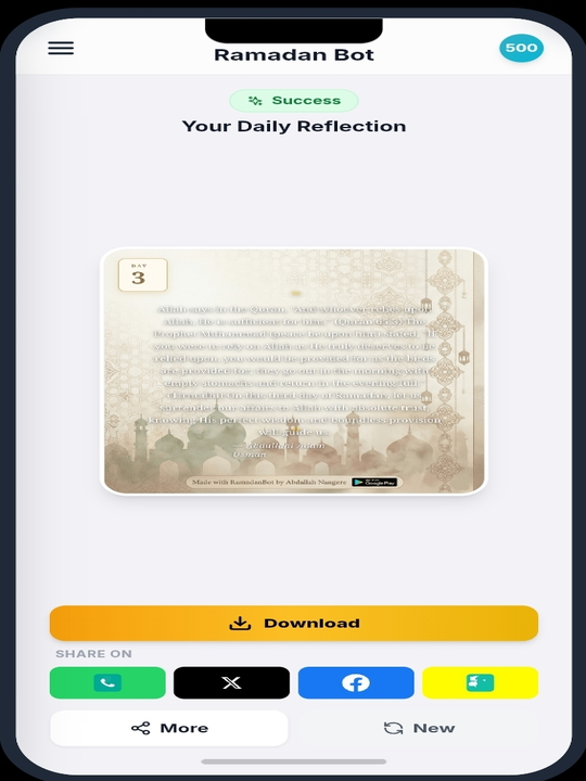 Create authentic, Quranic-grounded spiritual reflections and share high-resolution flyers with your community. Build consistent practice with daily streaks.